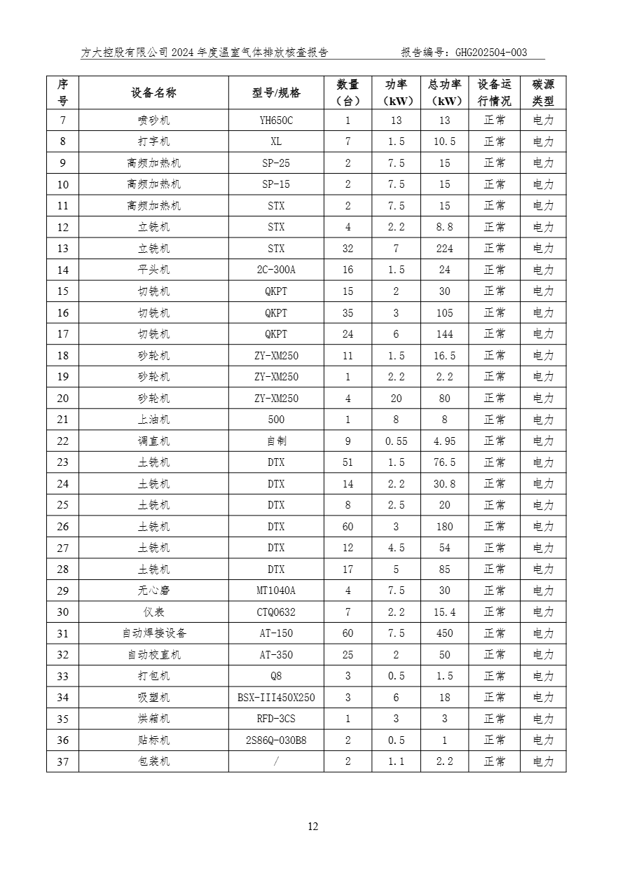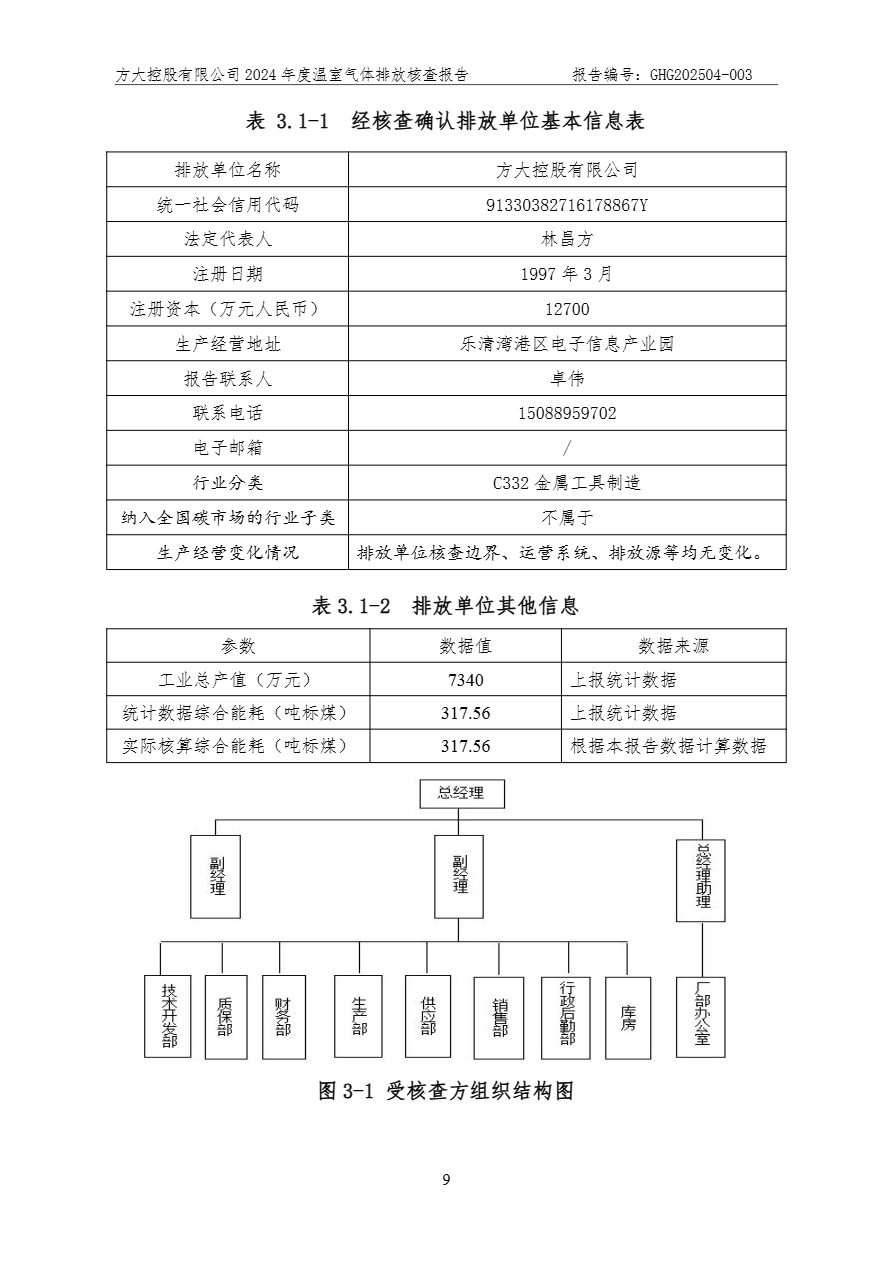 方大控股有限公司溫室氣體排放核查報告